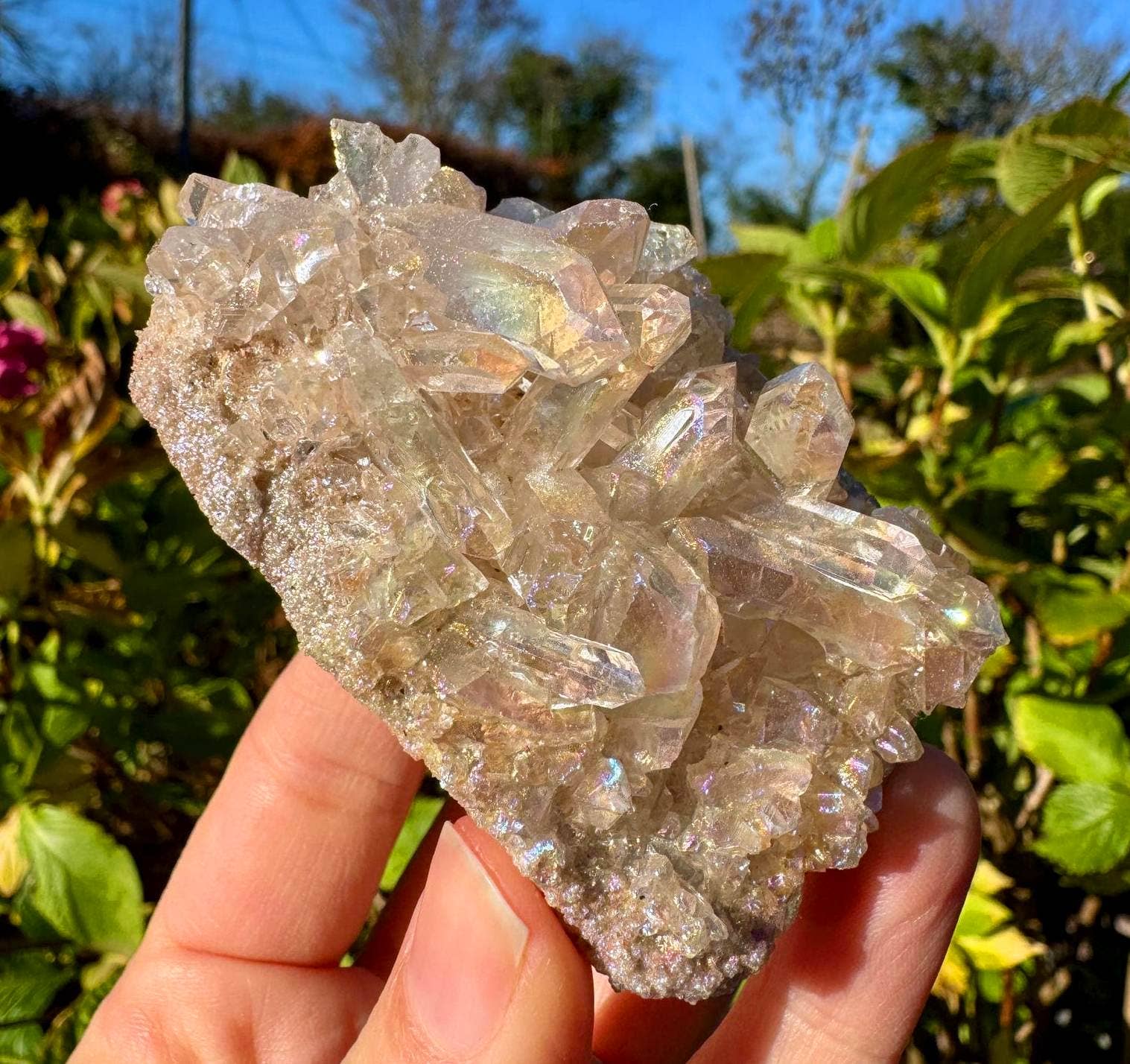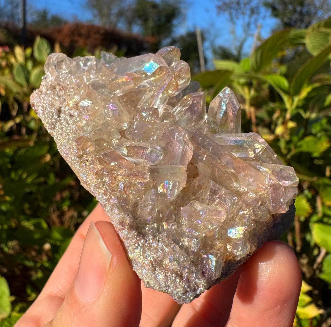 Angel aura quartz cluster ships fast worldwide today by elf. Shipping: For our brilliant friends across the pond we combine shipping on all orders. Our angel quartz clusters are proving very popular in our shop Elf Kendal. You can be sure of a warm welcome and all our crystals and fossils are on display alongside local sheepskin pelts, salt lamps, wool fairies and more. We are described as a veritable Aladdin's cave of delights.