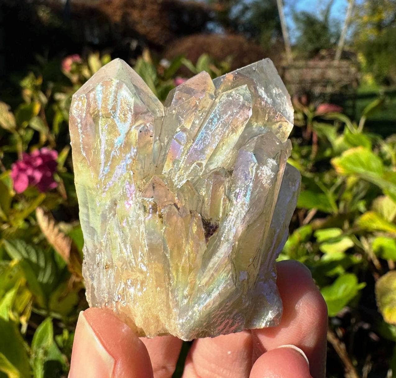 Angel aura cluster 2 sizes electroplated crystal points elf